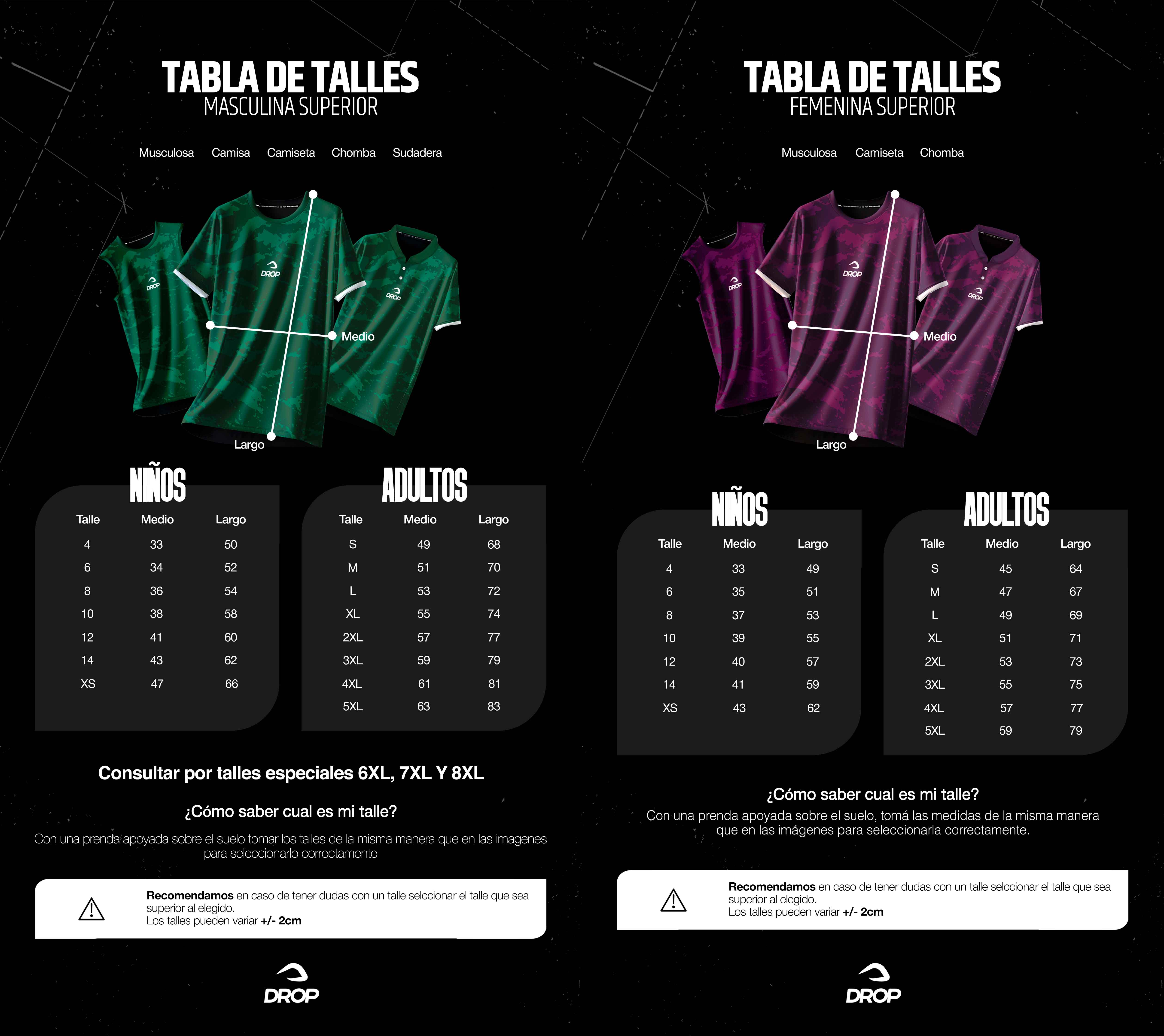Fabricadas con telas técnicas de alto desempeño y sublimación profesional Drop, garantizando colores intensos, máxima durabilidad y comodidad en cada partido.